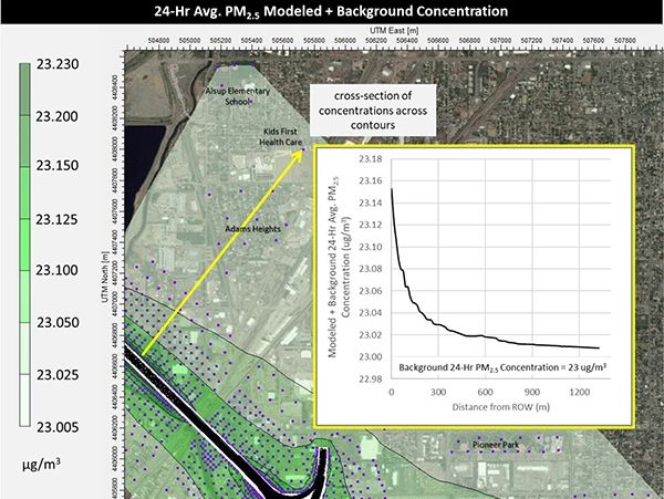 To assess the proposed I-270 improvements, Sonoma Technology conducted air quality dispersion modeling and completed a PM hot-spot analysis. We completed PM2.5 and PM10 air quality modeling based on the requirements of (1) the National Environmental Policy Act (NEPA), (2) U.S. EPA guidance for roadway hot-spot analyses, (3) Colorado Revised Statutes (CRS) Section 43-1-128, and (4) CDOT Air Quality Project-Level Analysis Guidance (AQ-PLAG). Our PM analysis work was informed by EPA’s “Transportation Conformity Guidance for Quantitative Hot-spot Analyses in PM2.5 and PM10 Nonattainment and Maintenance Areas.” The analysis was designed to help CDOT address public comments. Therefore, our approach went beyond typical PM hot-spot analyses and assessed PM concentrations at (1) sensitive locations farther than 500 meters from the project, and (2) on public trails within the CDOT right-of-way (ROW). The air quality analysis Sonoma Technology completed is available from CDOT at https://www.codot.gov/projects/i270/project-documents-and-reports; scroll to ‘Air Quality Report’ (our work is included in a Jacobs Engineering pdf file).