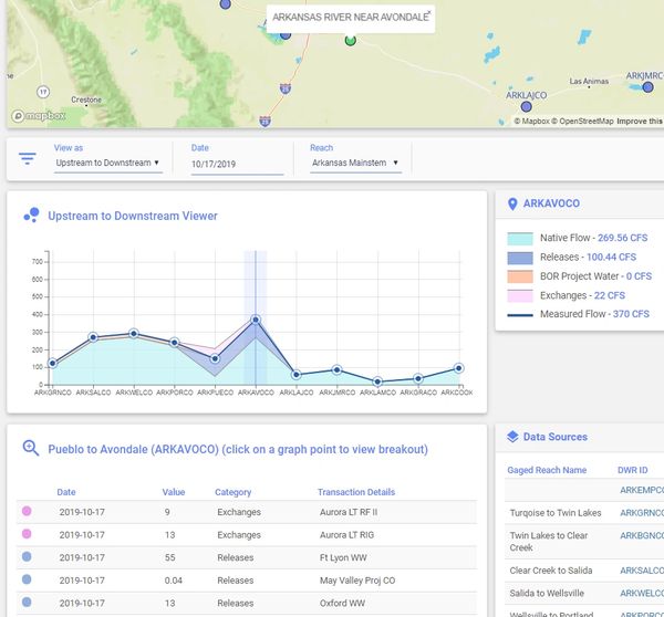 LRE Water developed the Arkansa Basin Water Operations Dashboard to facilitate transparent and streamlined daily operations and water accounting for Arkansas Basin water users. Secure web forms provide a consistent process for water requests. They are auto-populated with user information and provide immediate email confirmation. Interactive reports provide water users with access to current and past requests. This system is built on an open-source platform with that leverages the Google Stack to provide interactive data visualizations.